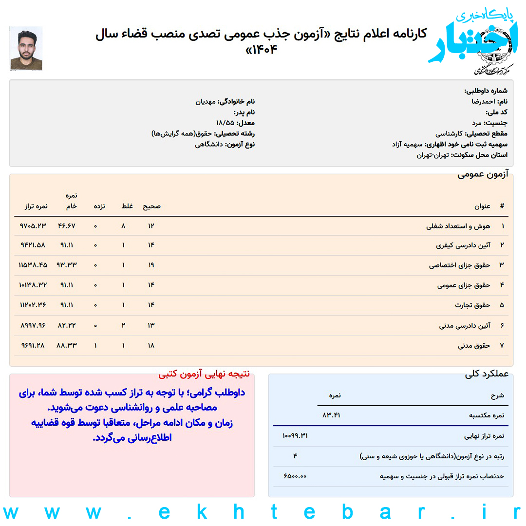 مصاحبه با احمدرضا مهدیان رتبه ۴ آزمون قضاوت ۱۴۰۴ کل کشور