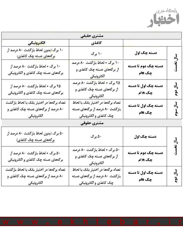 تغییر شرایط اعطای دستهچک: دستهچک اول افراد ۱۰ برگی شد