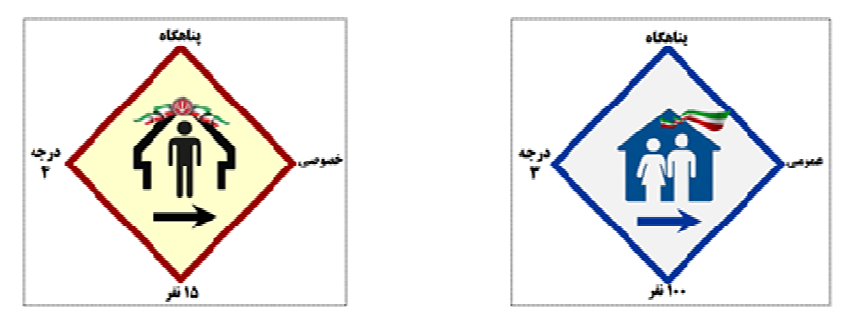 ب) در سمت راست پلاک، نوع پناهگاه اعم از “عمومی” یا “خصوصی” درج شود.