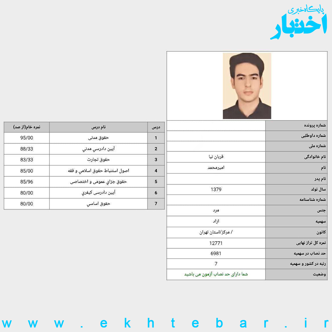 مصاحبه با امیرمحمد قرباننیا رتبه ۷ آزمون وکالت ۱۴۰۴ کل کشور