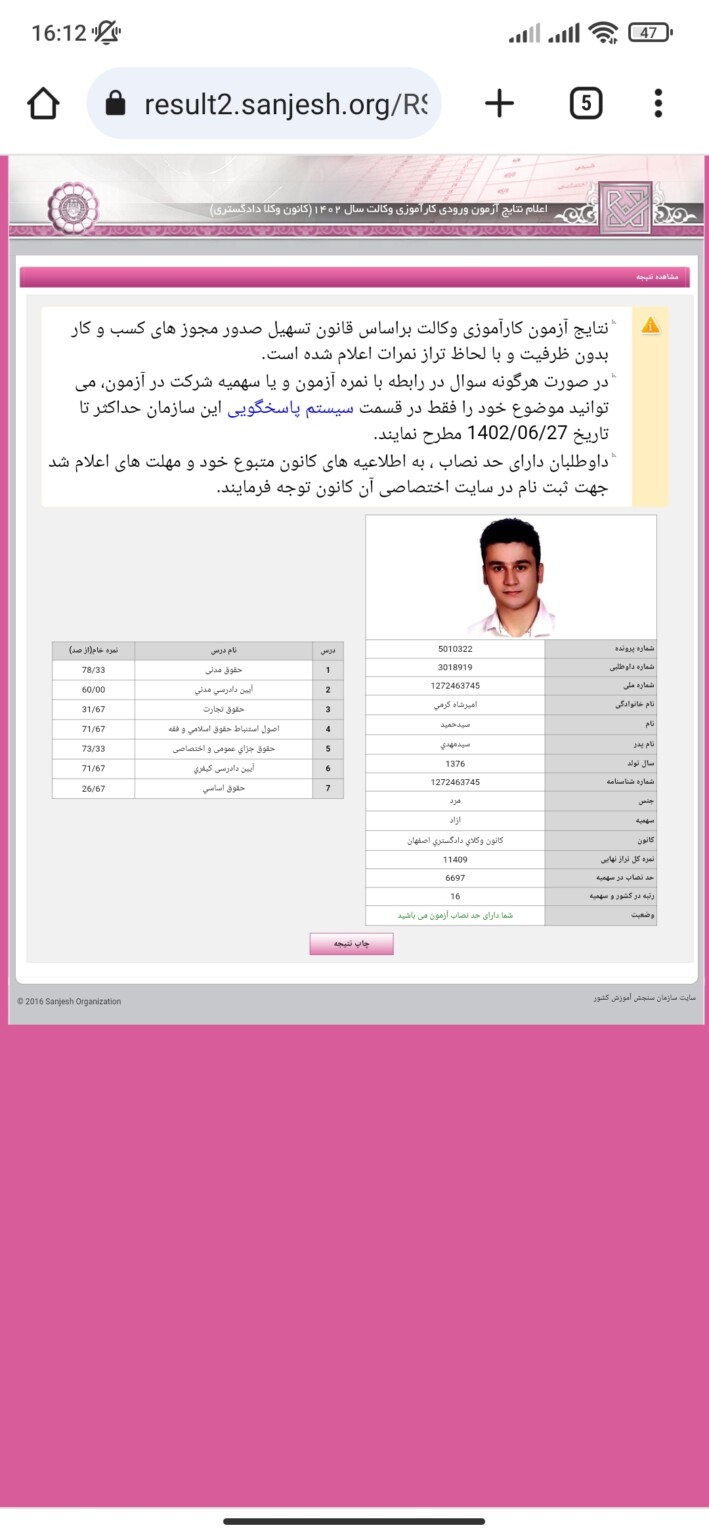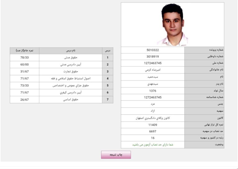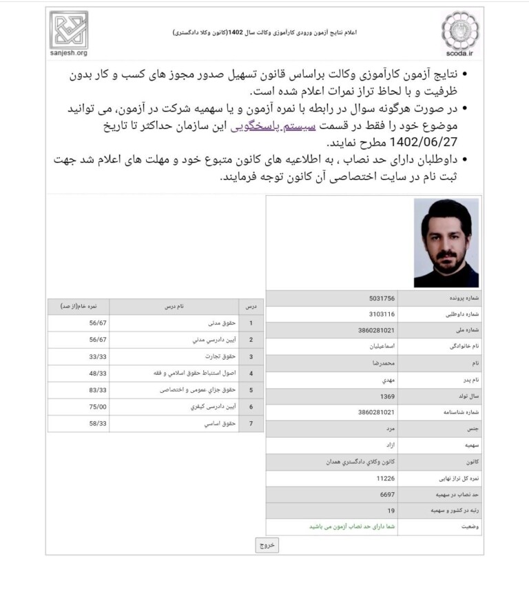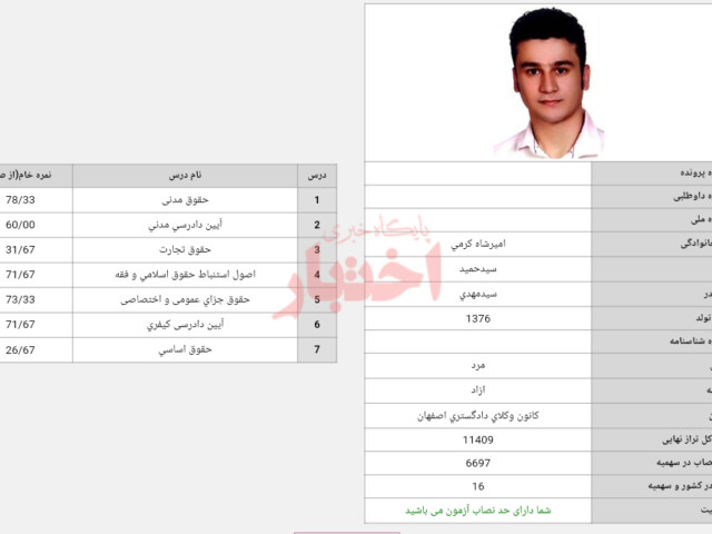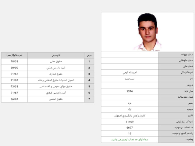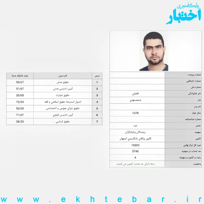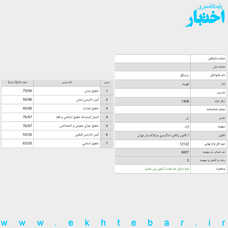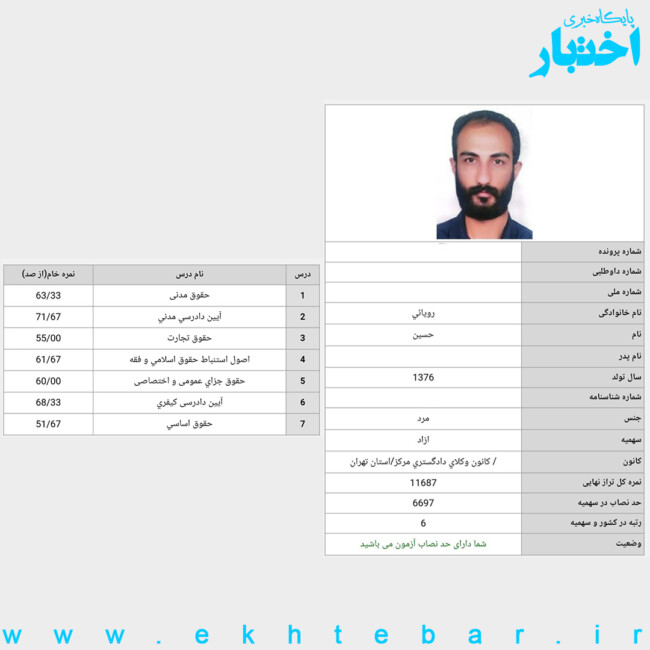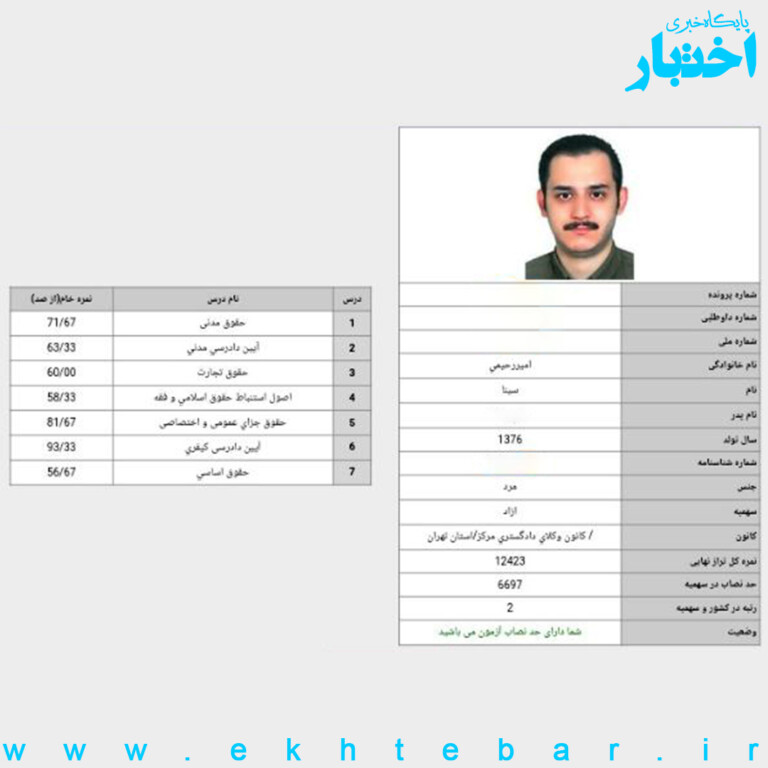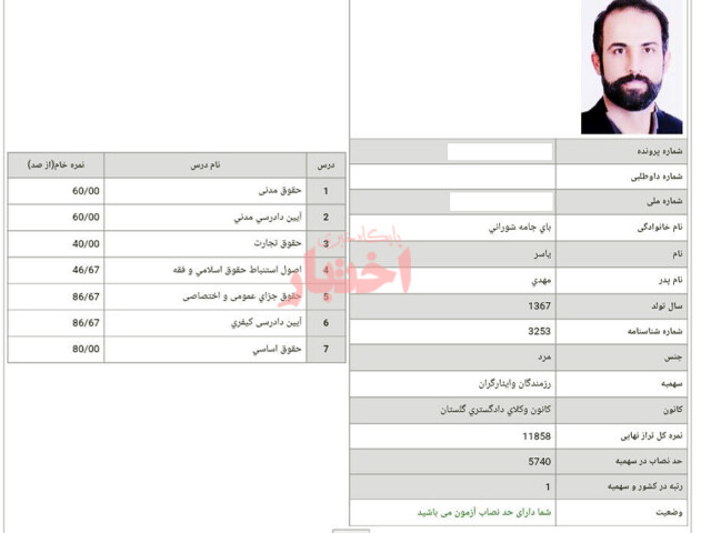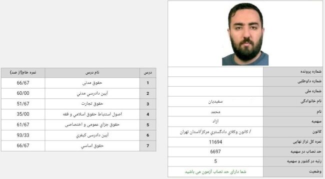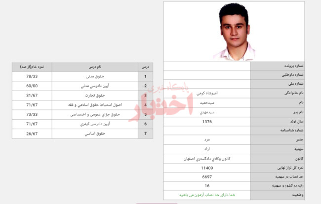 کارنامه-رتبه-6-سهمیه-ایثارگران-آزمون-وکالت...