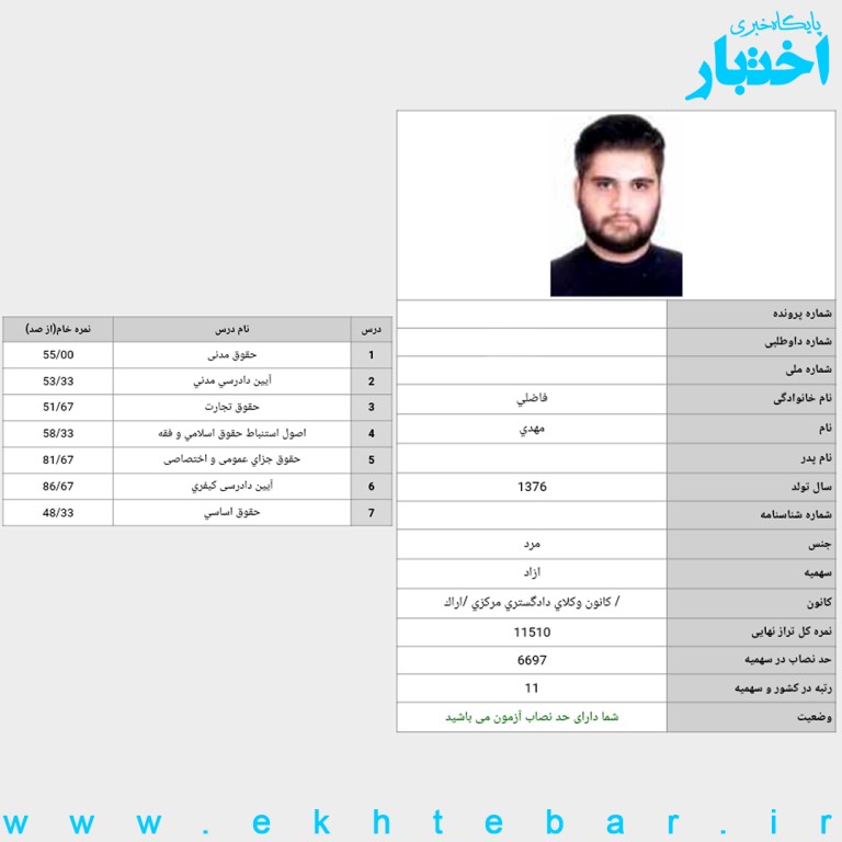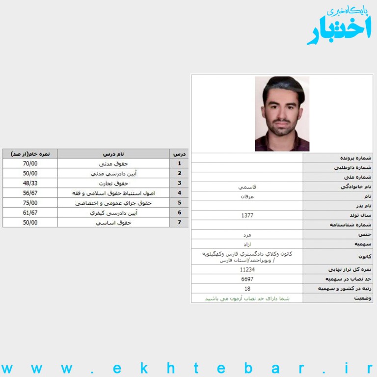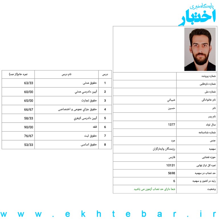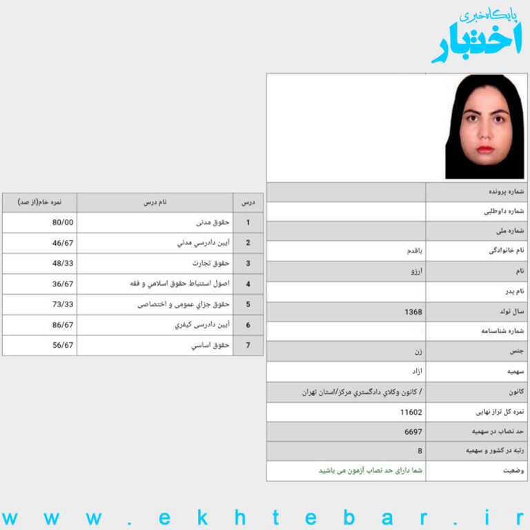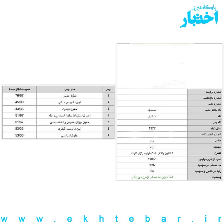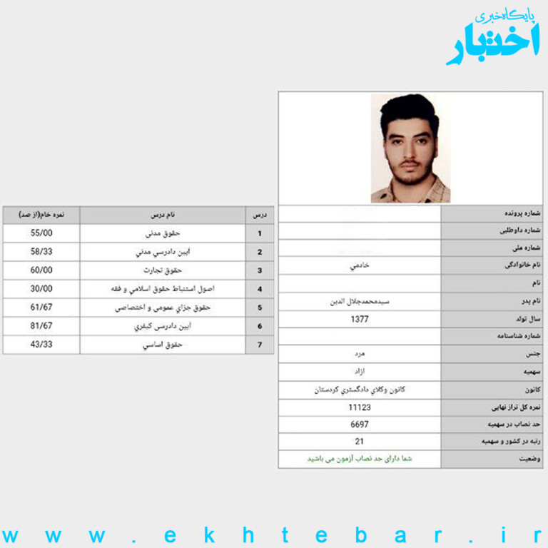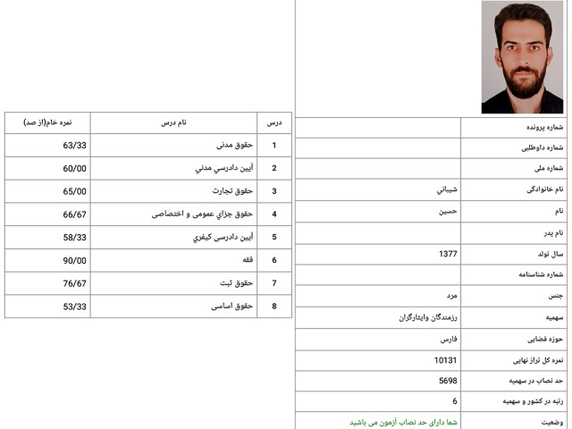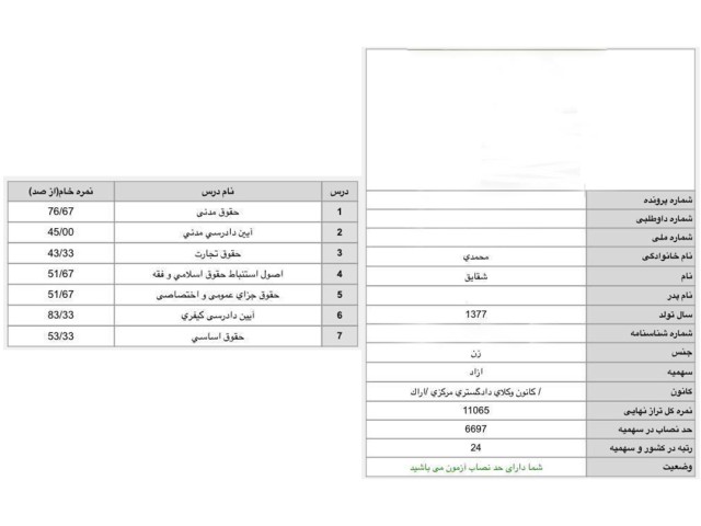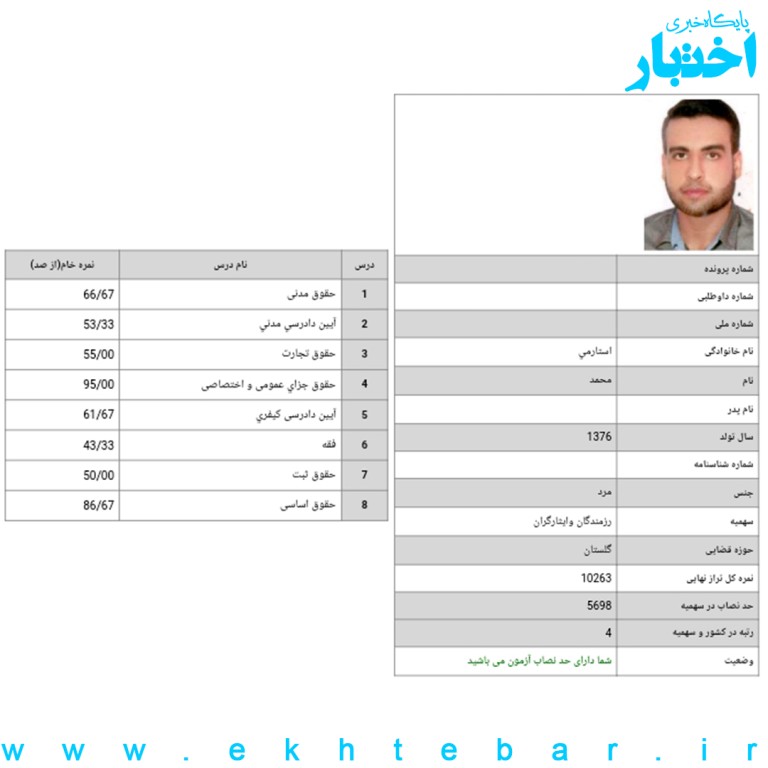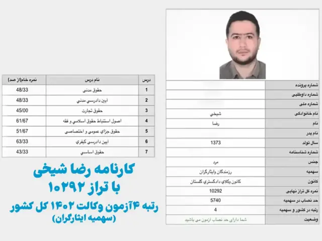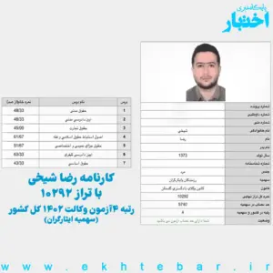 کارنامه-رتبه4-ایثارگران-آزمون-وکالت-1402-رضا...